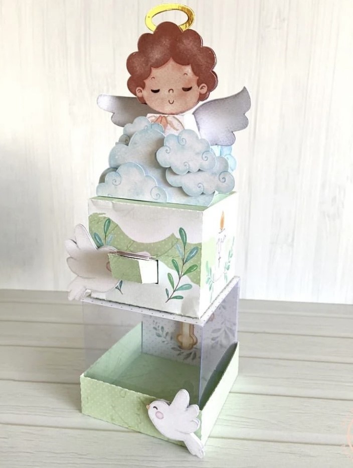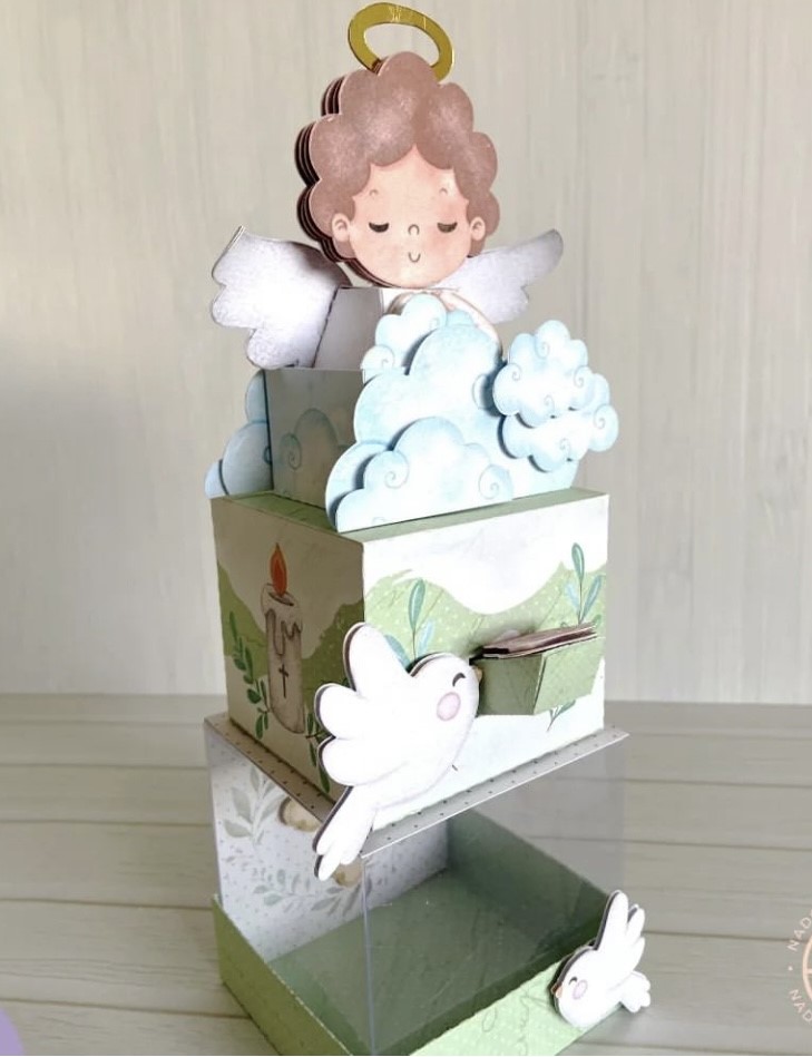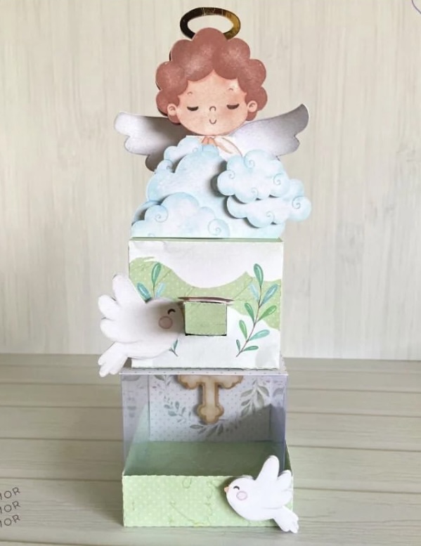 Esta caja Ángel puede ser parte de la decoración de tu mesa de Bautismo. Son especialmente diseñadas para dar altura y que todo se vea mas lindo y armonioso. Aparte puede quedar como un recuerdo de ese día tan especial.