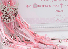 Material: Bendición de Bautismo que puede usarse como cunero o llavero. También como decoración de la habitación o para colgar en un bolso. etc. Pensado especialmente para regalar en ese día tan especial.