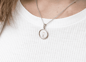 Medida: Cadena de 40 cm de largo y medalla de 1 cm de diámetro.
