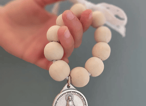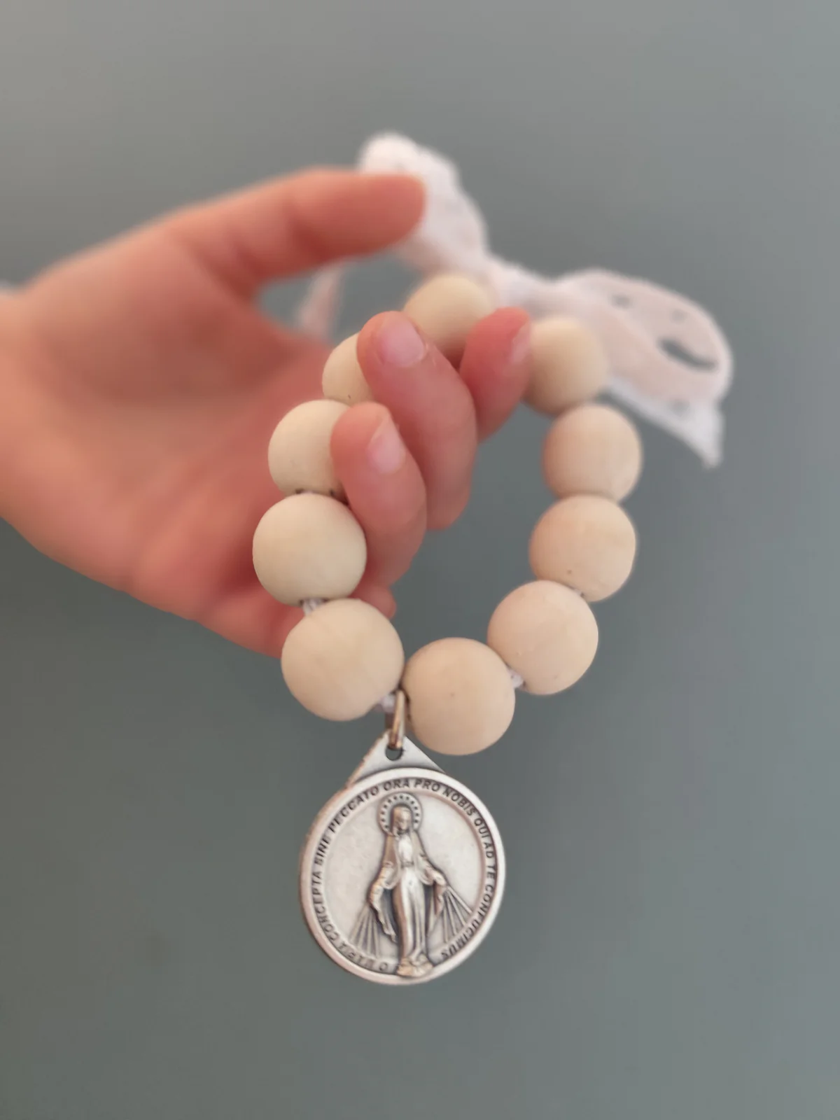 Material: Denario de bolas grandes de madera con dije protector y lazo.