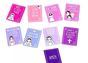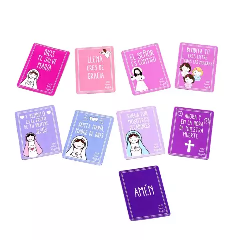 Material: Papel imantado, novedoso material de película magnética al dorso y papel incrustado al frente. Consta de 9 imanes en piezas parar armar la oración " Ave María" y que los niños la aprendan fácilmente.