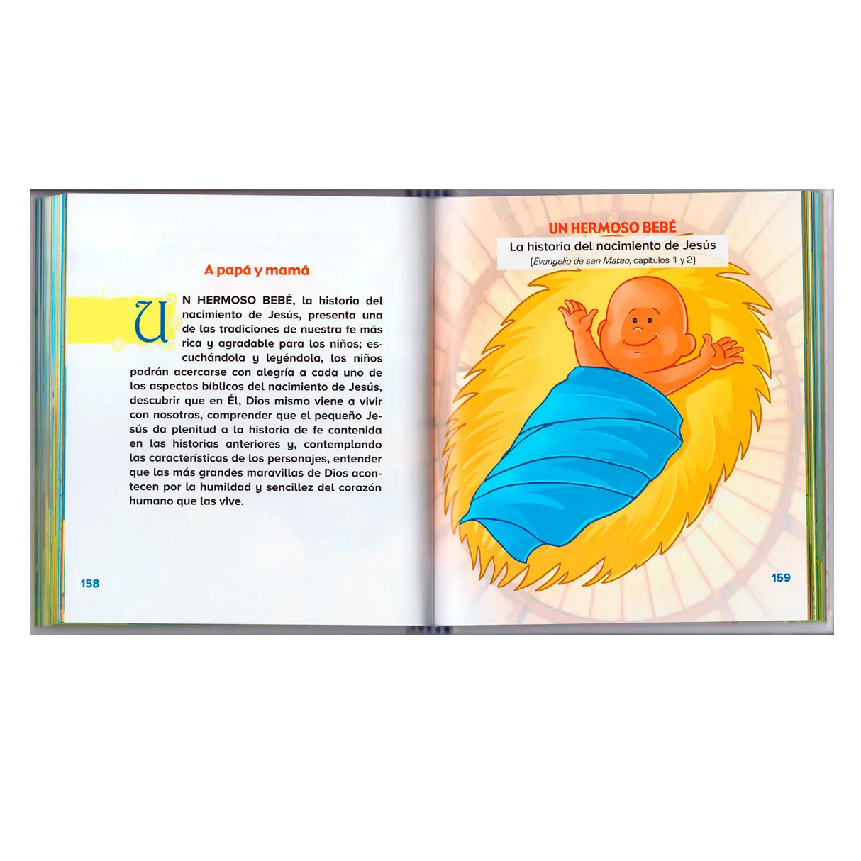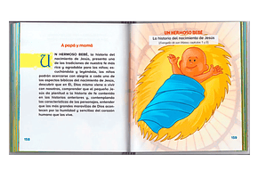 Material: Una Biblia con textos de fácil comprensión e ilustraciones descriptivas que presenta a los niños la historia sagrada: la Creación; el Arca de Noé; las historias de Abrahán, Moisés, David, Elías y Eliseo, y Jonás; el nacimiento, los milagros y la resurrección de Jesús, y el nacimiento de la Iglesia. Especialmente pensada para iniciar a los niños en la lectura de la Palabra de Dios.