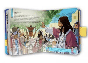 Material: Este libro contiene 31 oraciones e historias bíblicas del Antiguo y Nuevo Testamento, en un lenguaje sencillo y con bellas ilustraciones. Contiene 67 páginas en cartón grueso plastificado que les ayudará a enamorarse de la Biblia y a crear un hábito de lectura y oración. Contiene manija amarilla para facilitar el agarre del niño.Cubierta acolchada en color azul.