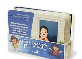 Descripción: ¨Niños rezando por la Vida¨ es una práctica cajita que trae 54 tarjetas con citas bíblicas y oraciones. Cada una de ellas permite que los niños se familiaricen con salmos y citas de los textos sagrados. Además, las oraciones los ayudan a dialogar con Dios, a partir de situaciones de la vida cotidiana que es necesario presentar al Señor. Las tarjetas traen hermosas ilustraciones, que representan a la familia y los niños en diferentes actitudes.