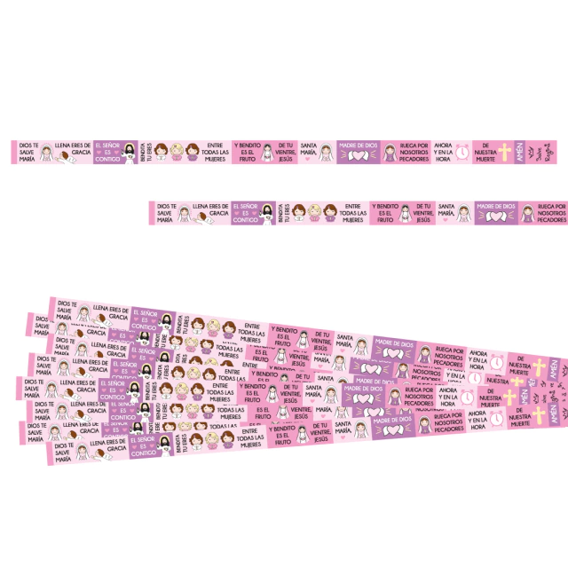 Material: Pulsera cinta de tela bordada con oración del Ave María. Ideal para regalarle a bebés y niños o como souvenir de bautismo o comunión.