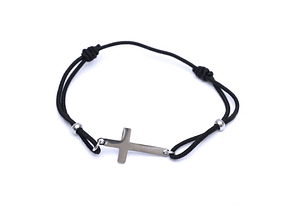 Material: Pulsera elasticada con cruz y cuentas de acero.