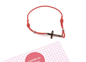 Material: Pulsera elasticada con cruz y cuentas de acero.