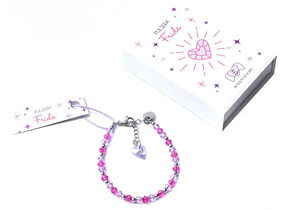 Material: Pulsera de cuentas de acero y cristales con dije de corazón al tono, también de cristal. Es Hipoalergénica y resistente al agua.