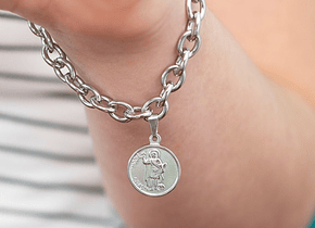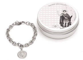 Material: Pulsera de acero quirúrgico (hipoalergénico y resistente al agua) con medalla de San Expedito, santo de las causas justas y urgentes.