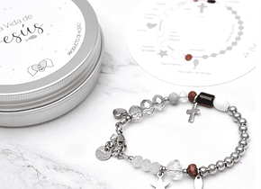 Material: Pulsera de cuentas en materiales variados en donde cada parte tiene un significado en la historia de Jesús.